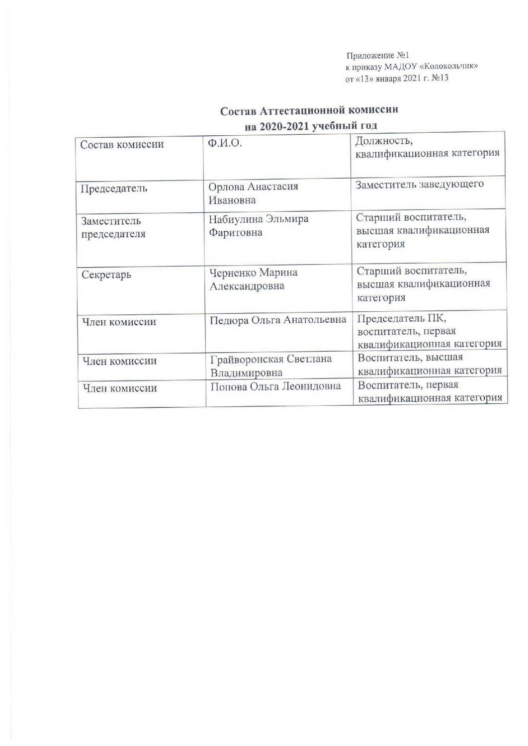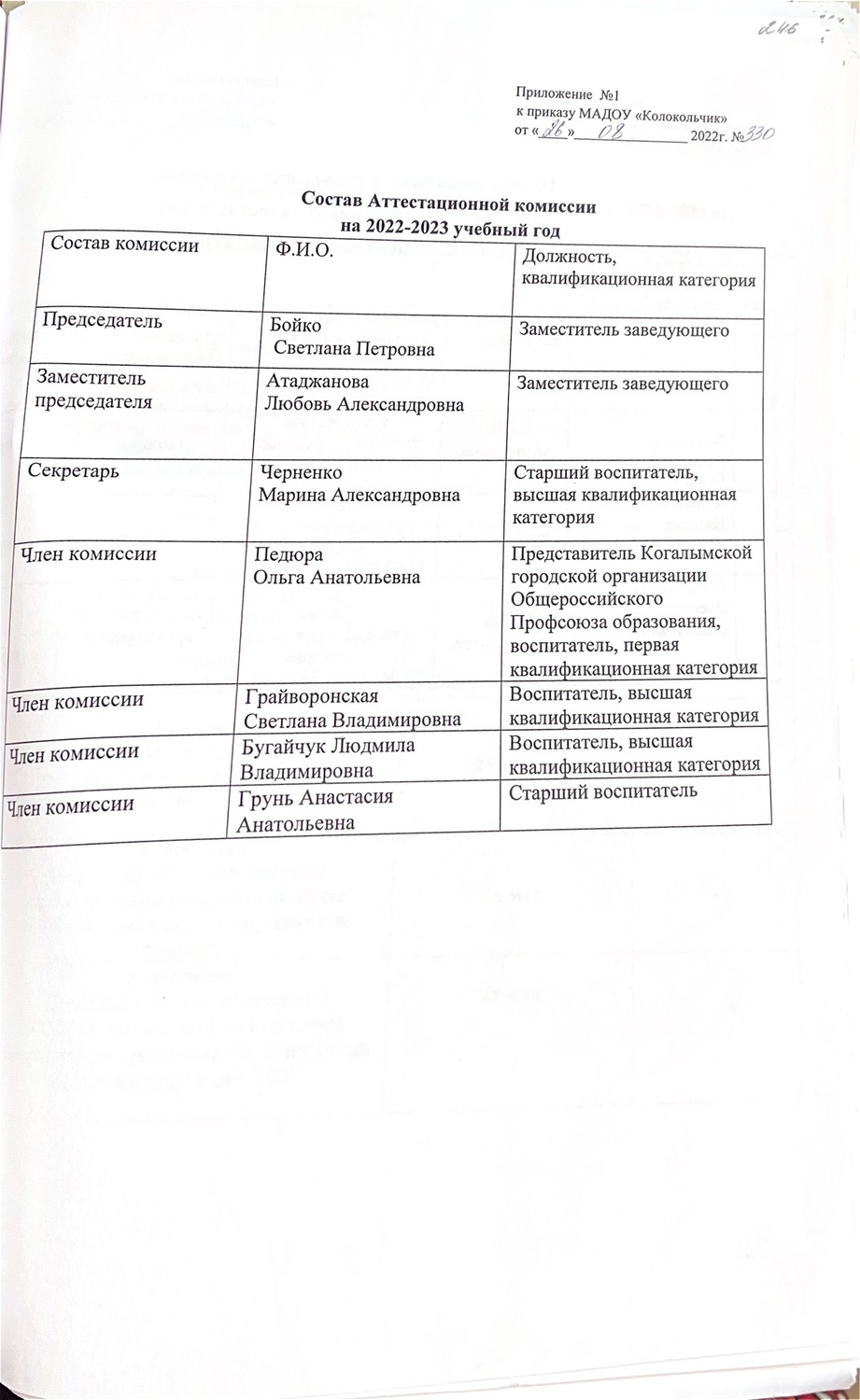 Член аттестационной комиссии ДОУ по аттестации педагогов на соответствие занимаемой должности