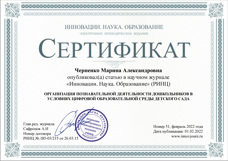"Инновации. Наука. Образование" Научный журнал РИНЦ
