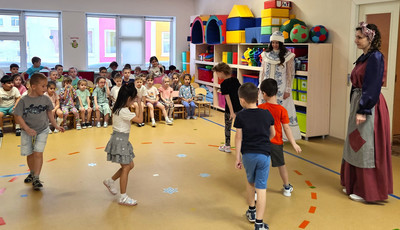 Сказочные персонажи Зимушка-зима и Баба Яга поговорили с ними о зимних месяцах и зимних явлениях в природе, вспомнили зимние развлечения и виды спорта
